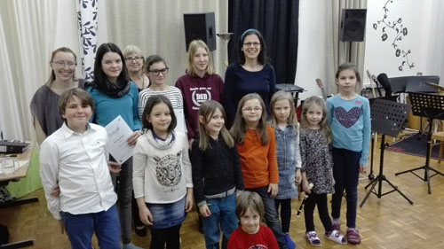 Gut gemacht! Frei nach dem Motto „Früh übt sich wer ein Meister werden will“ fand am 14. März das 1. Vorspiel der Blockflöten-,Gitarren- und Klavierklasse statt.Christina Cernek und Anita Vockner begleiteten ihre Schüler, manche mit mehr andere mit weniger Lampenfieber, durchs Programm das solistische Nummern aber auch Ensemblestücke enthielt. Z.B. das Blockflötenensemble, wo man die verschiedenen Arten von Flöten bewundern konnte. Am Schluss wurden die Urkunden der bestandenen Übertrittsprüfungen vom Musikschuldirektor Mag. Gerhard Cernek überreicht. Wir gratulieren recht herzlich Lisa Oswald, Kim Nedorost und Anja Pamminger und bedanken uns bei allen Mitwirkenden für den gelungenen Klassenabend!